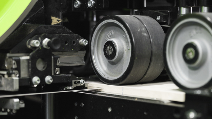 Following installation, production workflows were optimized so that the DSB Singlehead NG XM now performs the precise separation of solid wood blocks into lamellae. The extremely thin saw band reduces material loss while delivering higher accuracy and superior surface quality.